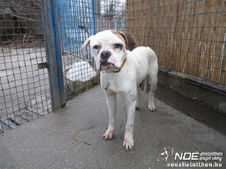 Sony ist ein weißer Boxer der im Bereich von Budapest herumstreunte. Er wurde eingefangen und in die Tötung Illatos út gebracht. Sein ursprünglicher Halter meldete sich nicht, so kam er in die Obhut der Boxer-Rassenrettung des NOAH Tierheim Ungarn.