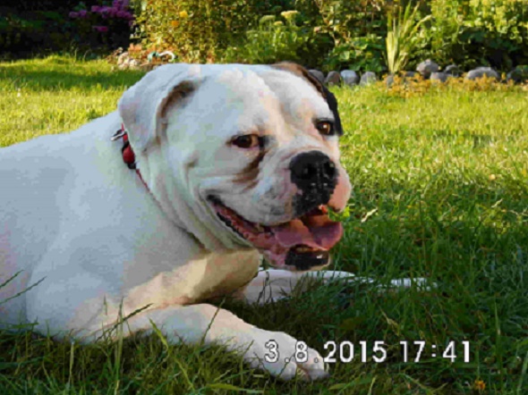 Ansonsten bringe ich alle typischen Boxereigenschaften mit: Clownerie, ungestümes Spielen, Kuscheln und Knutschen ohne Abwinken!