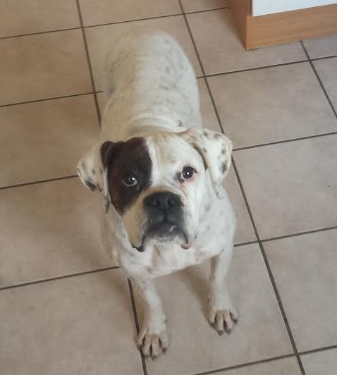 Sie ist eine sehr freundliche, liebe, ergebene Hündin. Wer weiß, was sie in ihrem Leben bereits alles erlebt hat. Sie hat fast keine Zähne mehr. Am ganzen Körper hat sie Narben. Ihre Milchleiste weist die Spuren von zahlreichen Würfen auf. Ihre Rute wurde im Grunde bis an die Wirbelsäule abgeschnitten.