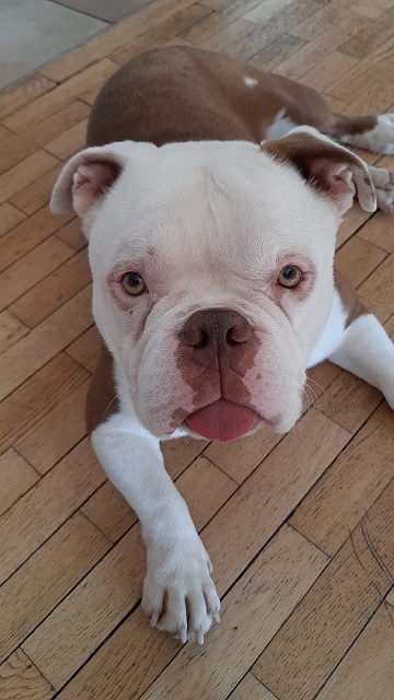 Wesen: neugieriger und lustiger kleiner Bullie, braucht viel Zuwendung und Liebe, noch ein wenig Erziehung erforderlich