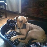 So bin ich und so bleib ich! Mein Frauchen hat sich sofort per Bild in mich verliebt! Ich habe meine beste Seite herausgekehrt und so durfte ich auch bleiben! Ich bin immer mit dabei! Egal ob beim Frühstück oder beim Fernsehen! Herrchen und Frauchen wollen mich immer um sich herum und ich genieße das sehr! Mein Körbchen ist schön ausgepolstert und ich habe eine neue „Mitschläferin“ bekommen! Das ist jetzt mein Baby! Hier fühle ich mich rundum wohl, werde betüttelt und das Fressen ist allemal besser, als das, was ich vorher bekommen habe! Hier werde ich bleiben! Herrchen und Frauchen haben da gar nix gegen! Sie lieben mich und merken, dass ich mich bulldog-boxerwohl fühle! Außerdem bin ich ein Schoßhündchen, wie ihr unschwer erkennen könnt! So ist es und so soll es auch sein!