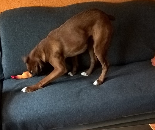 Die Tierschützer haben ihn jedoch nicht wieder heraus gegeben. Er kam ziemlich unterernährt im Tierheim an. Vielleicht ist das auch ein Grund, warum er so extrem sein Futter gegenüber Artgenossen verteidigt!