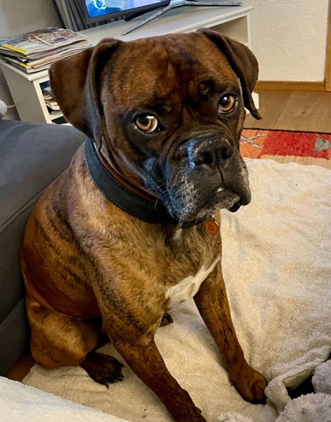 Sie sagt, dass ich ein typischer Boxerclown mit vielen Flausen im Kopf bin. Das ist für uns Boxer ein Kompliment und keinesfalls eine Beleidigung 😊