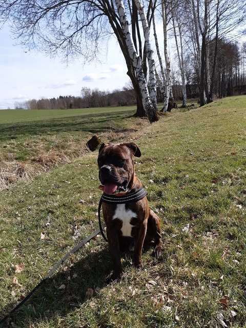 Außerdem ist da noch ein Garten wo ich herum tollen darf. Sind wir nicht im Garten trainieren wir fleißig auf der Straße oder Feldweg. Denn ich Thordy komme leider noch nicht mit anderen Vierbeinern klar. Bald gehe ich wieder in die Hundeschule, da lerne ich mit Artgenossen zusammen .