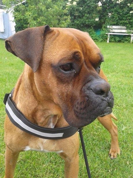 Thyson ist ein verspielter und stürmischer Boxer. Er kennt noch nicht besonders viel und braucht dementsprechend Erziehung. Mit Artgenossen hat er keine Probleme.