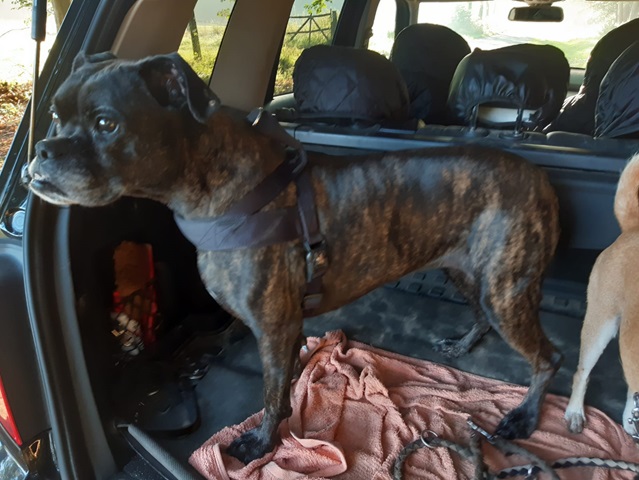 Mein Boxerkumpel , mit dem ich hier zusammen lebe ist schon ein Opi. Er kann mich leiten und kuschelt gerne mit mir, doch behält er dabei immer die Führung.