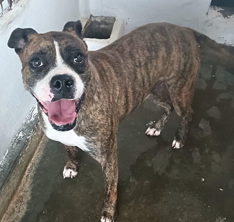 Tigris ist ein wundervoller Boxermix, den wir gemeinsam mit unseren Partnern aus einer schlechten Perrera befreien konnten.