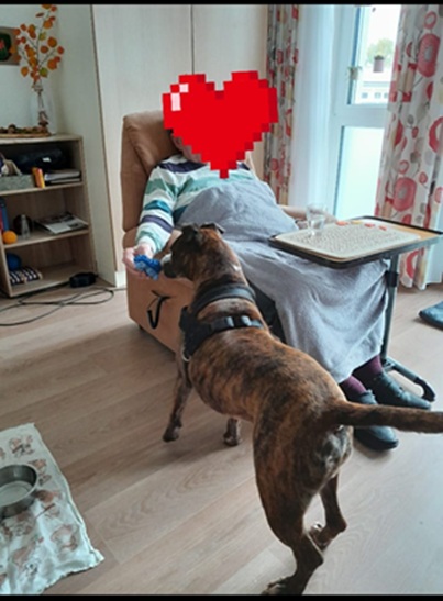 Die Bedingung war, dass er im Seniorenheim, wo seine Familie 3 Nachmittage pro Woche verbringt, ohne Aggression mit Bewohnern und ihren Hilfsmitteln klar kommt.