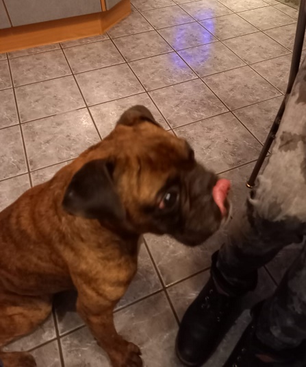 Mein Trainer Alberto beschreibt mich als liebevollen und geselligen Boxer. Generell verhalte ich mich sehr brav und hatte bereits einen Grundgehorsam, den wir nun noch einmal vertieft haben.
