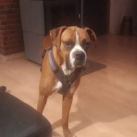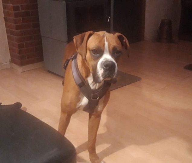 Wesen: sehr menschenbezogener und anhänglicher Boxer, noch nicht stubenrein, muss eigentlich noch alles Lernen
