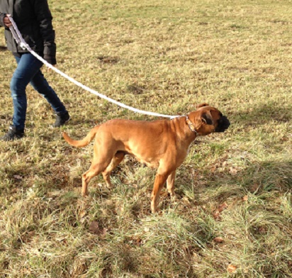 An der Leine zieht sie sehr. Sie muss noch lernen, wie man sich zu benehmen hat.