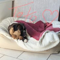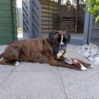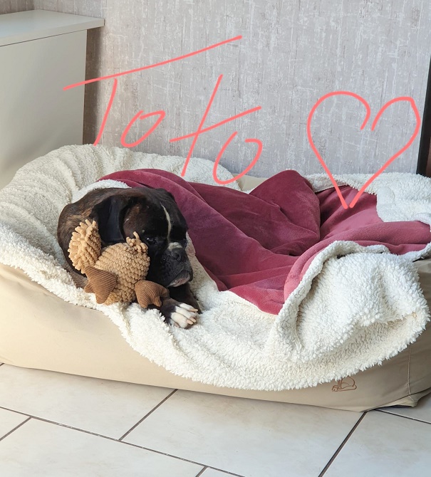 Das Futter bekam ich gebracht. So vergingen die ersten 2 Tage. Mit Leberwurst ging ich zumindest durch die Terrassentür rein. Zur Haustür rein und durch die Räume laufen wollte ich aber nicht. Dann kam meine Boxerfreundin Maxie ❤.