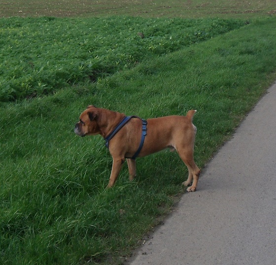 Inzwischen habe ich schon richtig gut Kondition aufgebaut und größere Spaziergänge machen mir nichts mehr aus. Ganz im Gegenteil ich freue mich immer, wenn die Leute hier die Leine in die Hand nehmen. Mit meiner Freundin der Buffy jage ich gemeinsam durch den Garten, das macht vielleicht Spaß. Meine Menschen sagen immer ich sei ein toller Hecht, versteh ich nicht, bin doch ein Boxer.