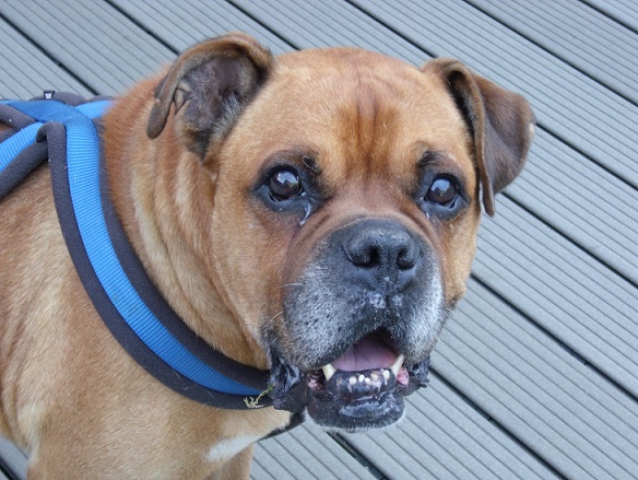 Ich gehe noch gerne spazieren und auch beim Essen bin ich nicht wählerisch. Mindestens einmal am Tag wird ausgiebig gekuschelt, dann lege ich mich auf den Rücken damit Mama oder Papa mir den Bauch kraulen können. Manchmal werde ich dann etwas albern und spiele den Clown, aber ich fahre auch genauso schnell wieder runter.