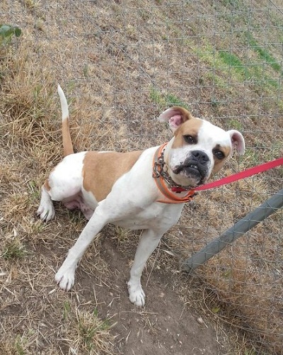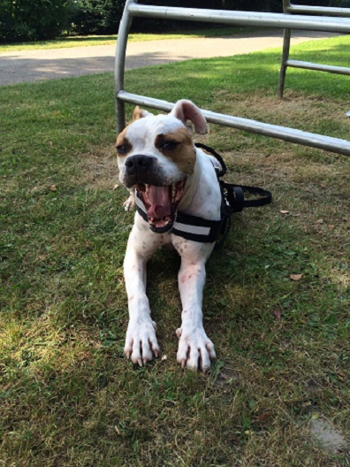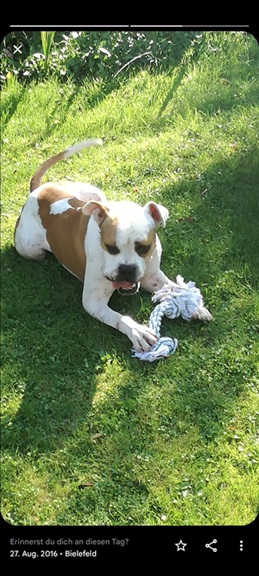 Zur Zeit arbeitet ein Hundetrainer mit dem Kerl, damit er zumindest die „Sprache“ seiner Artgenossen versteht und das Gehen an der Leine erlernt.