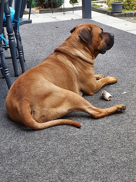 Die Menschen, die sich angeblich unsterblich in mich verliebt hatten, haben mich nach einigen Tagen wieder zurück gegeben: ich bin zu groß und zu kräftig! Da fällt „Hund“ nichts mehr zu ein! Was denkt man denn, welche Größe ein Boxer-Doggen-Mix hat!? Es ereilte mich also hier bei Euch, Gleiches Schicksal wie in meiner Heimat Spanien!