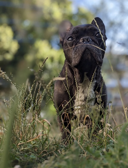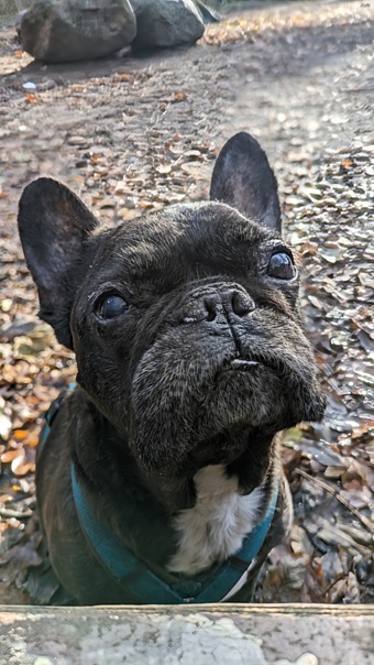 Ich bin Ubay – ein kleiner French Bulli – und in der Tat schon ein Opi. Weise, liebevoll, gut erzogen und verträglich.