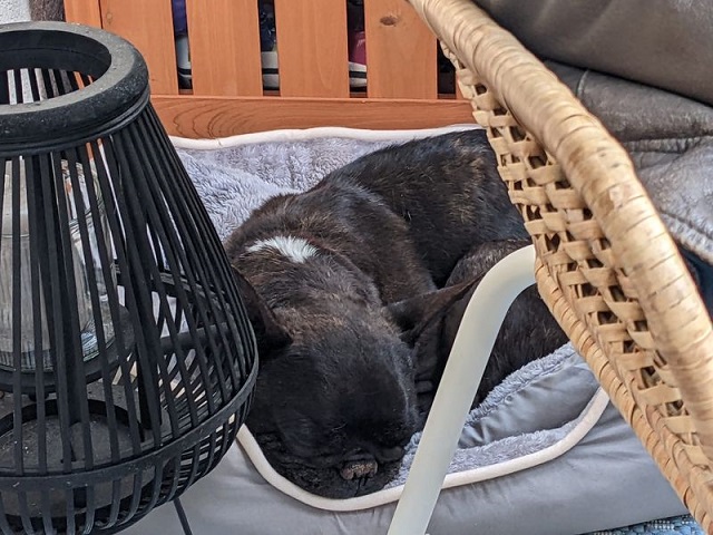 Ich freue mich, dass dieser Oldie nun unser Leben bereichert. Er ist einfach entzückend, und ein gutes Beispiel, dass auch ältere Hunde ein neues Zuhause finden können und sich noch Mal an Menschen und Hundekumpel binden können.