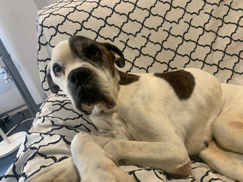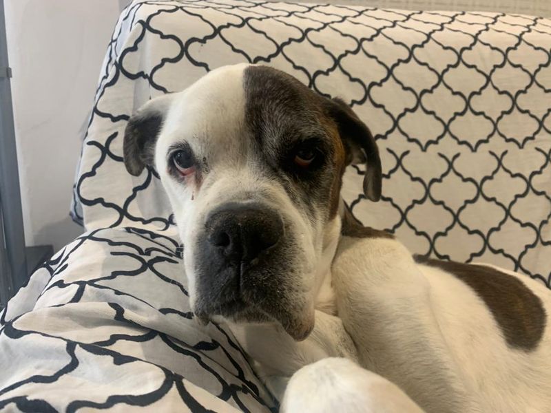 Die hübsche alte Boxerdame wurde in einer Perrera abgegeben.