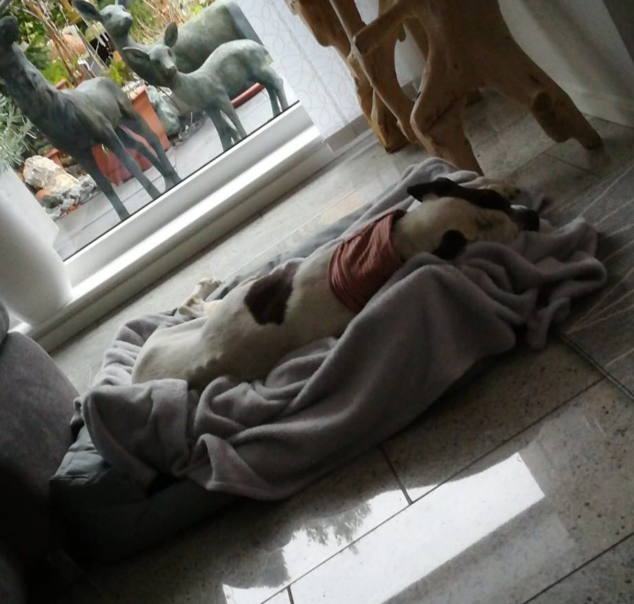 Traurigerweise muss ich Ihnen heute, nach 13 Monaten lachen, kuscheln, spazierengehen, am liebsten alles fressen, Sonnenbaden im Garten mitteilen, dass unsere geliebte Venezia gestern nach gestellter Diagnose im Oktober 23, Analdrüsenkarzinom inoperabel, gestern in unser aller Beisein über die Regenbogenbrücke gegangen ist.