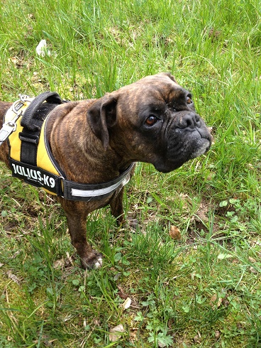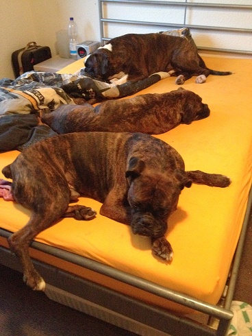 Nach einem kurzen Exkurs an den Rhein bei einer sehr, sehr lieben Pflegefamilie, trieb mich mein langer Weg vor 3 Wochen nach Mittelhessen zu 2 Boxerjungens, die mich sehr freundlich in ihrem Zuhause aufgenommen haben.