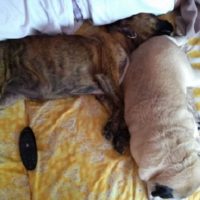 Unsere Mama ist eine dunkelgestromte Boxerhündin. Nachdem der kleine Unfall bei ihr passierte und wir Babies geboren wurden, hat man erst versucht, uns privat zu vermitteln. 3 unserer Geschwister haben so ein neues Zuhause gefunden. Doch leider sind wir übrig geblieben und in die Obhut eines Tierschutzvereins übergeben worden.