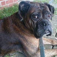 Früher hieß ich Wilma, kam in 11.08.2017 mit meinem Sohn Fred, der aber leider schon verstorben ist, von Irland nach Deutschland in eine Pflegestelle von Ein Herz für Boxer e.V.