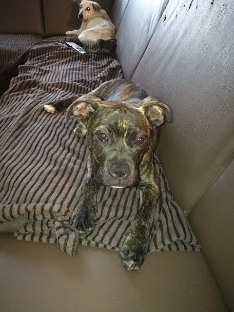 Schon nach 1 Woche war ich hier der Musterschüler sagt Frauchen: „Nicht mehr drängeln wenn das Futter zubereitet wird, Box für die Nacht braucht er nicht mehr, Katzen sind gaaanz langsam auf Annäherung, er ist ein Couch – Hund und lernt jeden Tag die Welt kennen.“