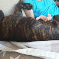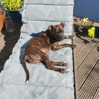 In Duisburg freue ich mich über einen großen Garten, einen riesen Waldauslauf direkt hinter dem Haus. Aber am allermeisten bin ich begeistert von meinen neuen Hundefreundinnen, die auch bei mir wohnen (im Haus nebenan in einem offenen Garten): Lotte (Doggen-Mix) und Emmi (Mischling aus Griechenland) und meinem neuen Spielkamerad Frederik (8-jähriger Sohn).