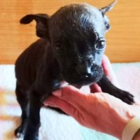 Ich war der Kleinste im Wurf und ganz schnell merkte man, dass ich nicht richtig wachse. Die Leute in Spanien suchten eine Pflegefamilie für mich, wo man sich intensiver um mich bemühen konnte. Mit der Flasche wurde ich gepäppelt und es erfolgten etliche Untersuchungen beim Tierarzt. Es wurde festgestellt, dass ich eine Hypoalbuminämie hatte. Nicht ungewöhnlich, wenn sehr kleine Hunderassen beim Decken mit von der Partie sind!