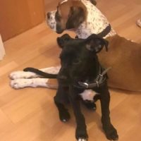 Mittlerweile bin ich schon seit 4 Wochen in Deutschland. Bei meiner Pflegefamilie fühle ich mich sehr wohl. Boxer Campino ist mein großer Freund und Welpencoach! Ebenso kümmern sich meine Pflegemama Jessi und ihre Kinder sehr liebevoll um mich!