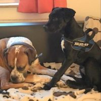 Super wäre auch, wenn schon ein Hund bei Euch wohnen würde. So ein Artgenosse würde mir mehr Sicherheit geben und ich würde es genießen, mit ihm zu Kuscheln.