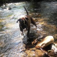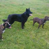 Gleich nach dem Heimkommen ist Herrchen mit mir Gassi gegangen. Da gibt es gleich eine große Wiese und einen Fluss. Und ich hab auch gleich andere Hunde dort getroffen. Wir haben uns beschnuppert und dabei vorgestellt und dann gleich fröhlich gespielt.