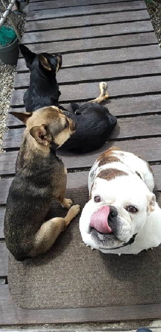 Aaaaber, sie ist ein Traum von einem Hund. So Dankbar. Verträgt sich mit den anderen zwei Bullis und mit den zwei Hasen auch .