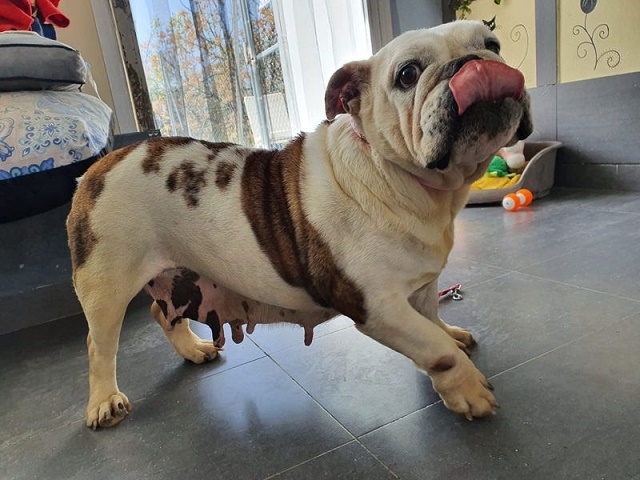Sie wird jeden Tag selbstbewusster. Lotte liebt es Leckerlis zu fordern und das typisch wie eine Bullgogge. Energisch und stur!