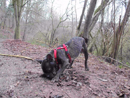 Frauchen meint aber, dass das mit der Sozialisierung noch ausbaufähig ist. (Ich knusper gerne meinen männlichen Mitbewohner-Hund an.)