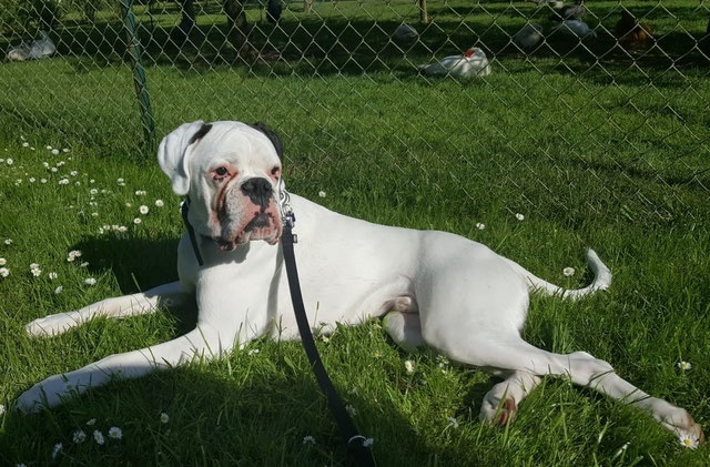 ZEUS, geboren am 07.09.2017, ist ein reinrassiger weißer Deutscher Boxer mit Ahnentafel. Das hat ihm leider nichts geholfen. Trotz Ahnentafel und seiner unendlichen Freundlichkeit landete der junge Hund in einem Tierheim, wo er definitiv nicht hingehört !