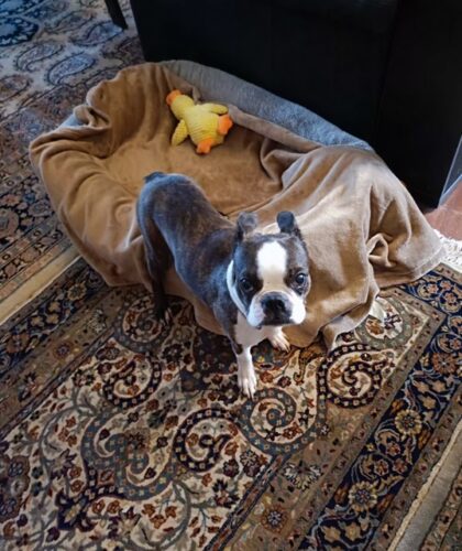 Unsere Boston Terrier Sippe kommt auch aus der gleichen Beschlagnahmung in Spanien wie unsere EB-Family und wird derzeit bei unseren Partnern liebevoll betreut.